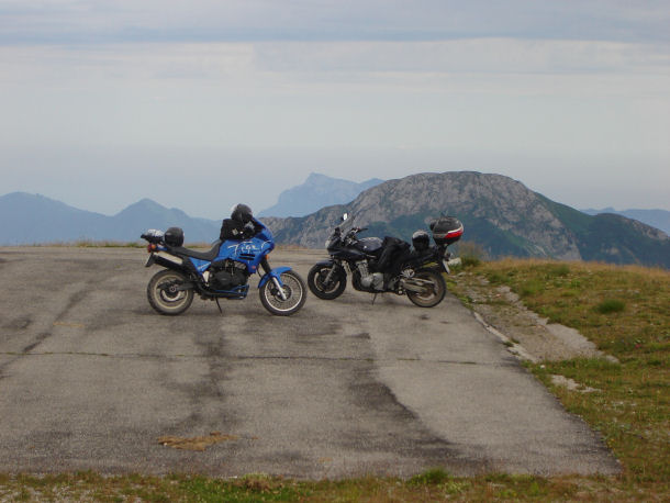 Dopo pranzo io, Stefano e Marzia ci facciamo un bel giretto: dal Croce Domini prendiamo la strada verso Passo Maniva, una spettacolare strada di costa, in gran parte non asfaltata. Il panorama è meraviglioso, nonostante la giornata non sia delle più limpide. Saliamo anche ad una ex base Nato, da cui si ha una vista ancora più bella.