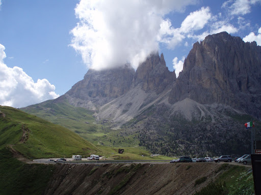 dopodichè scendiamo e ci avviamo verso Canazei pronti per arrampicarci sul pordoi ma qui inizia la prima dissaventura della giornata...