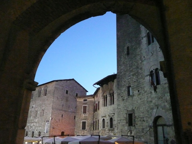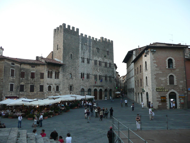 La piazza, col Palazzo del Potestà, la duecentesca Palazzina dei conti di Biserno che separa il Palazzo del Podestà dall’imponente mole del Palazzo Comunale, costruito in epoca medievale