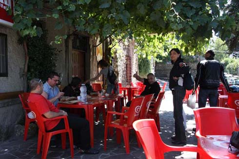 La sosta-panino a Capranica, sotto il pergolato del bar chiuso, è stata piacevole e "fresca"