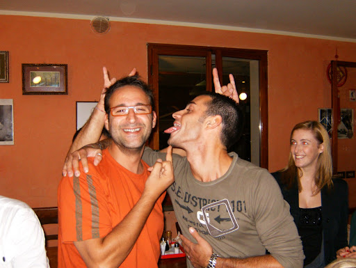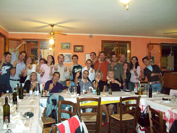 Eccoci finalmente da Brel con 15 minuti di anticipo sull'orario fissato e già in lontananza riconosco la macchina di Des e vedo la testolina bella e mora della Mery accanto a lui...credevamo di essere in anticipo ed invece con noi arrivano Er Cipolla, Er Betulla, Vin lingua di fuoco e le loro rispettive zavorrine (chi è quell'anima pia che mi ricorda i loro nomi??)