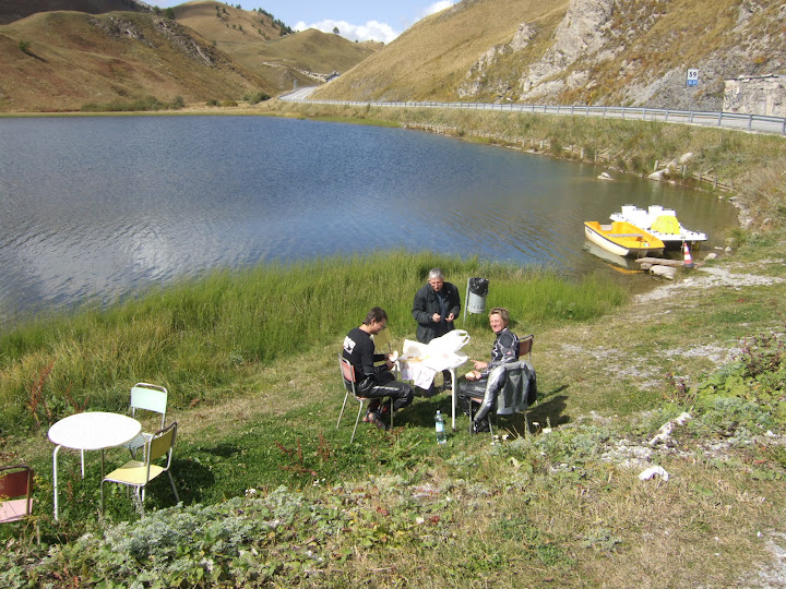 Rabboccato il carburante risaliamo la valle Stura direzione colle della Maddalena e confine con la Francia ed è lungo i tornanti di questa salita che accade il fattaccio: come siamo riusciti a capire in seguito, pochi minuti prima del nostro passaggio,era transitato un camion il quale, dopo un rifornimento di carburante, aveva sicuramente dimenticato di rimettere il tappo nel serbatoio oppure lo aveva serrato male, risultato: in una curva a sinistra si era depositata una bella striscia di gasolio della quale Aldo è rimasto vittima subendo una caduta che gli ha purtroppo causato la rottura del pollice della mano destra.