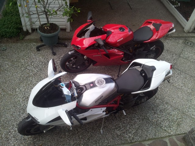 ne furono fatte 2 una correva x un tim che non sto a fare il nome nel campionato superstok e la seconda fu la mia, inizialmente la usarono principalmente come moto da esposizione fu esposta persino dai arabi in un padiglione nautico del Qatar poi venne venduta al primo propietario che ci fece la bellezza di 400km in 4 anni la teneva ferma nel suo salone di casa come abbellimento fino ad un mese fa fino a che un bel giorno mi chiama mio cugino da caserta ex poliziotto in pensione e mi dice caro cugino umberto devi assolutamente scendere a caserta da me o trovato la moto x te, io gli chiesi che moto e lui mi mando le foto e descrizione, fu amore a prima vista scesi giù a caserta da milano con la consapevolezza di comprare una gran moto mio cugino naturalmente prese informazioni sulla moto ci indago su la fece provare quando tutto risulto a posto scesi giù a caserta quando la vidi dal vivo non credevo ai mie occhi pensavo non e possibile sto sognando invece era vero verissimo fu davvero un gran colpo di c..o (il proprietario dovette vendere x questioni finanziarie sue ) fu la mia fortuna
