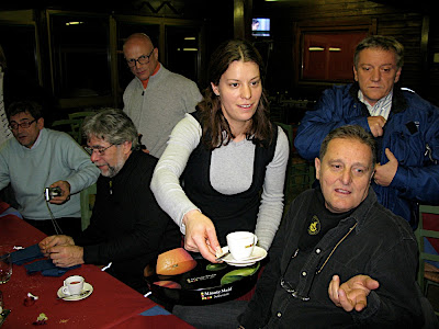 Un aperitivo veloce, ci sistemiamo e poi, tanto per cambiare, se magna! La cena è la consueta performance di un gruppo di OVER-50 scatenati. Casino a manetta e sghignazzate a crepapelle. Complice Assunta, il povero Nicola viene bersagliato portando Alessandro alle lacrime.