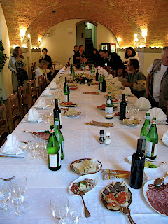 Partiamo da Viterbo su Via Cassia verso Siena. Il tempo non è un granché, ma non piove e tanto ci basta. Ci fermiamo per un caffettino a Bolsena e poi proseguiamo alla volta di Buonconvento dove ci aspetta L'Osteria da Duccio. A Buonconvento, siamo accolti da un piacevolissimo sole che qualcuno di noi mostra di gradire particolarmente.