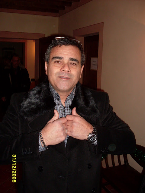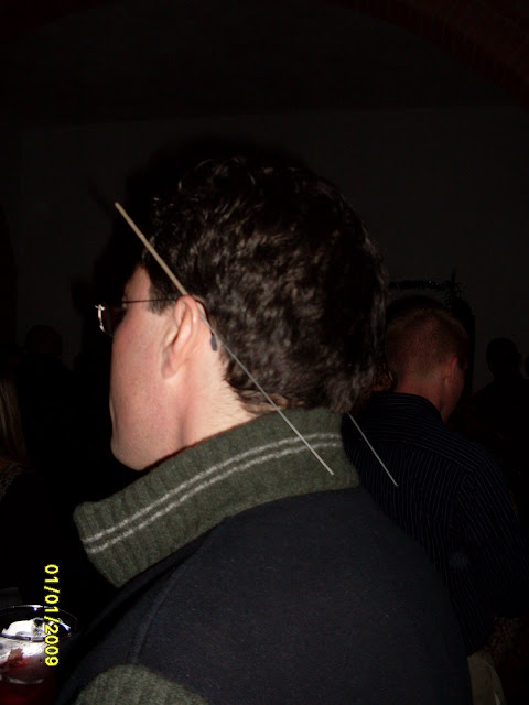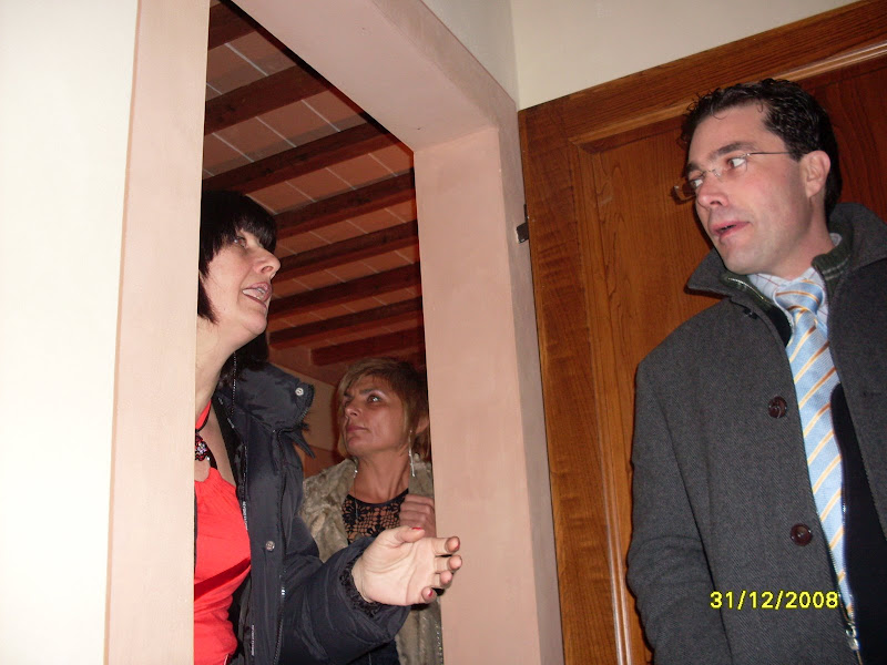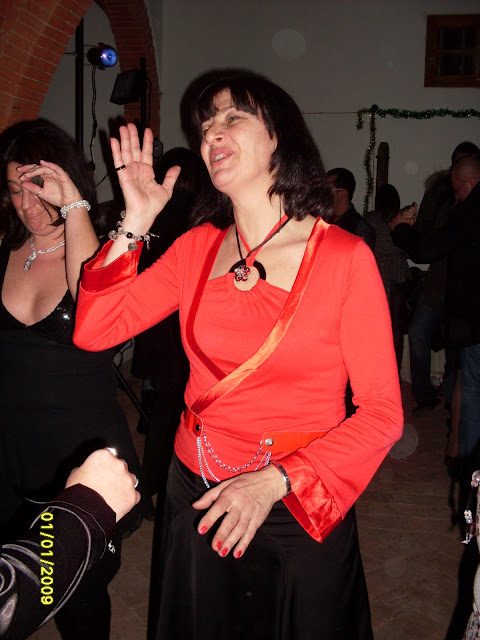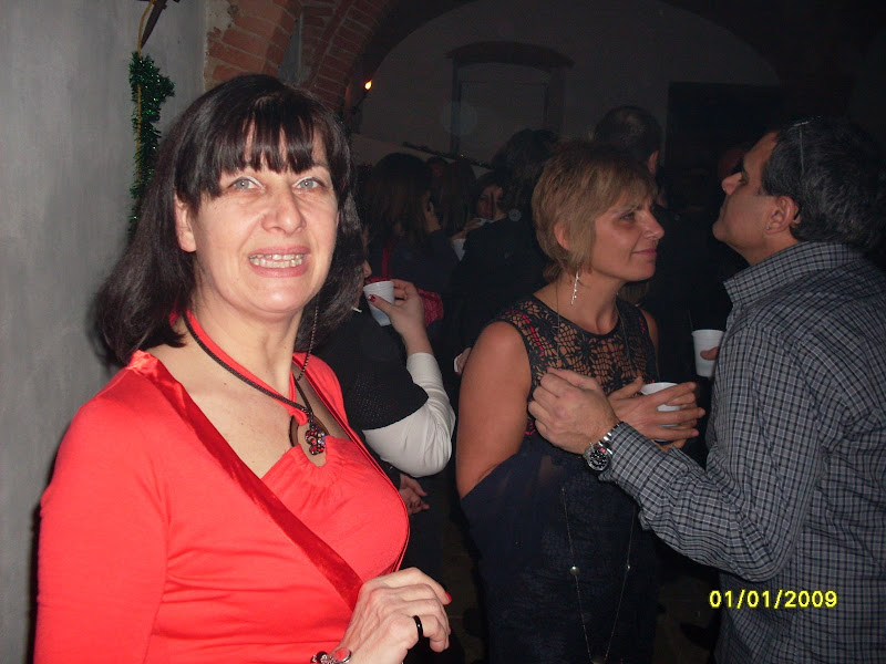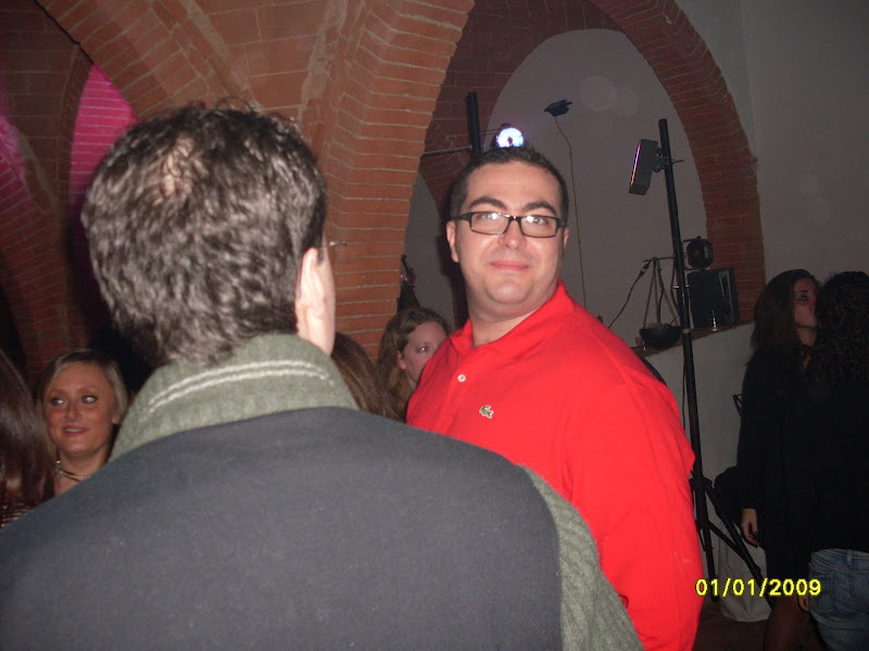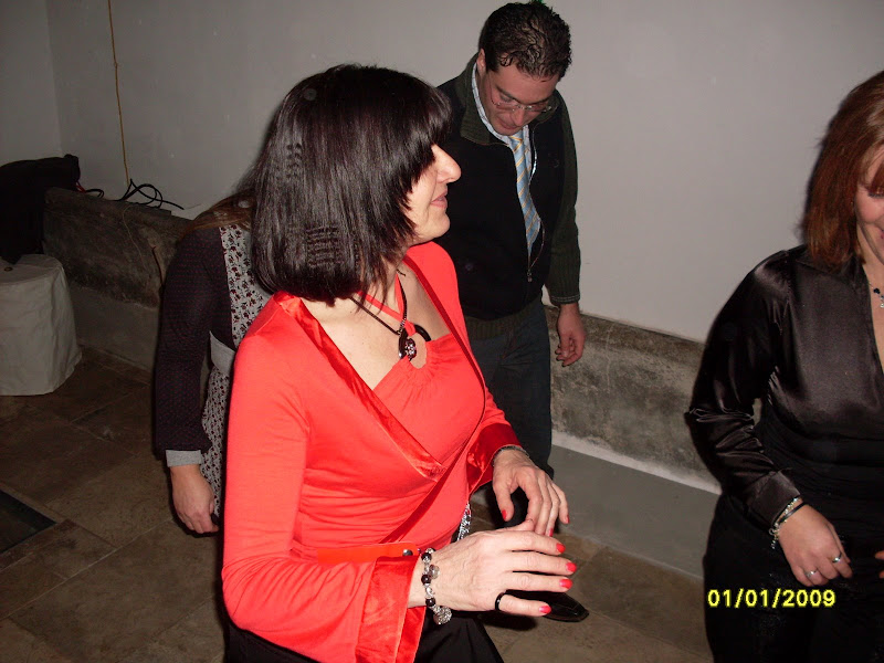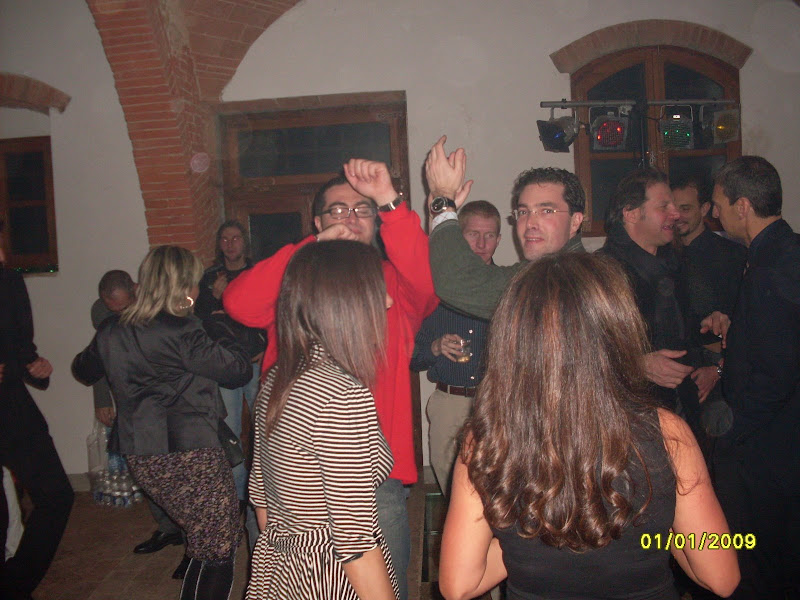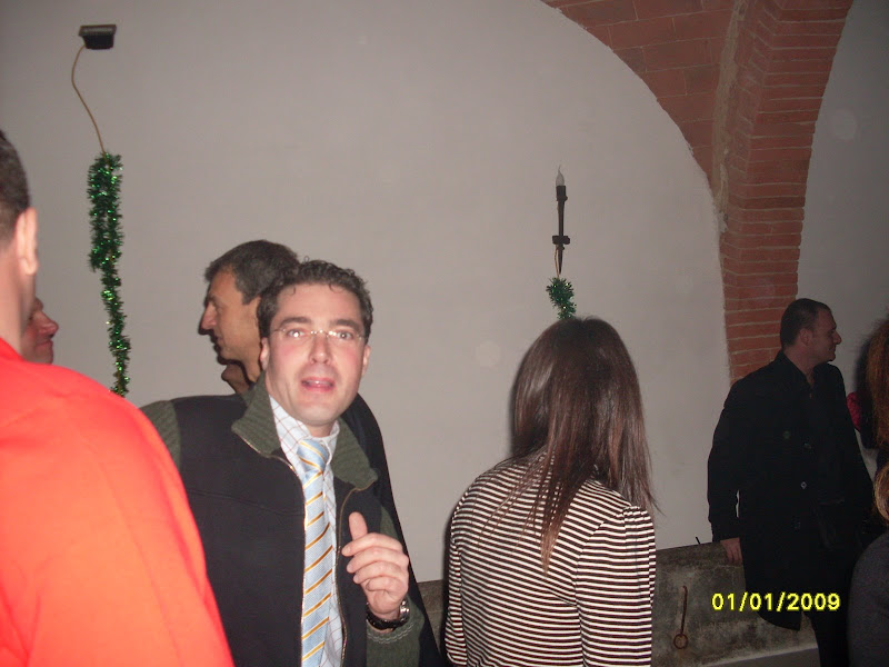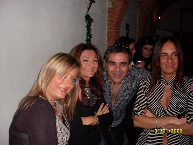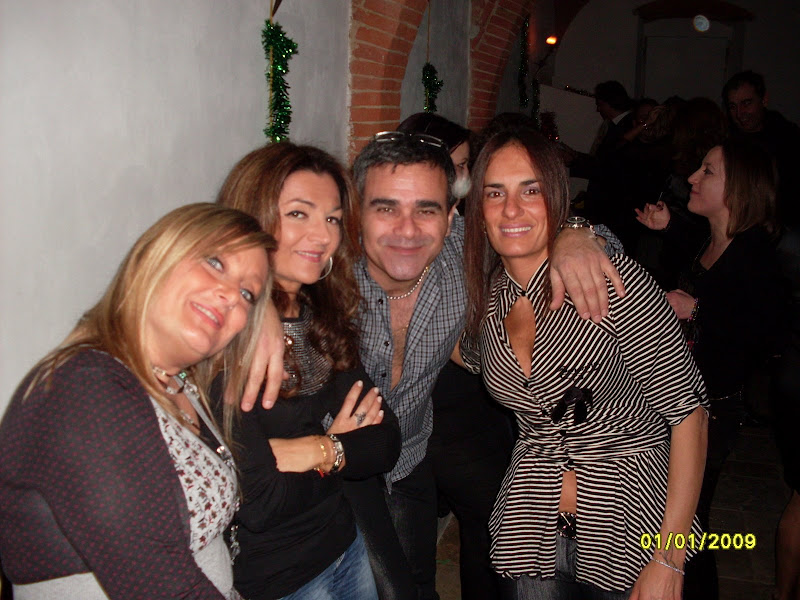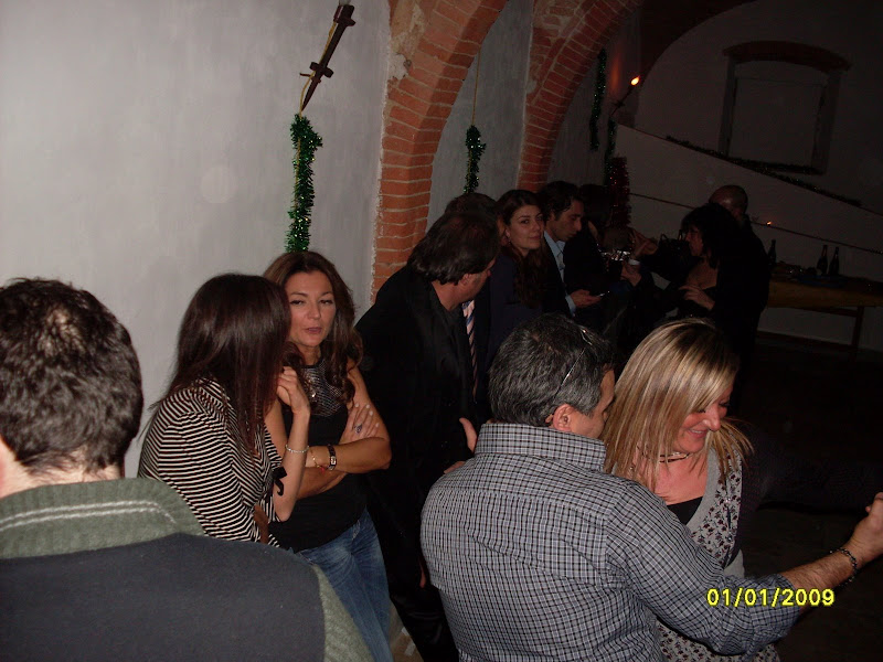 si fa festa, alla mezzanotte, brindando e accendendo le fiaccoline brilluccicose (come cavolo si chiamano???), si insomma quei bastoncini che fanno tutti gli schizzi luminosi, avete capito... mille foto, tante chiacchiere fatte dal nostro PR per eccellenza e dal nostro supporter fotografico, mentre Dario sparisce al piano di sopra, dove c'è musica con pianobar (al piano terra il dj non ha staccato un attimo, in compenso si staccava la luce e la musica) e il camino in quella che una volta doveva essere una cucina...