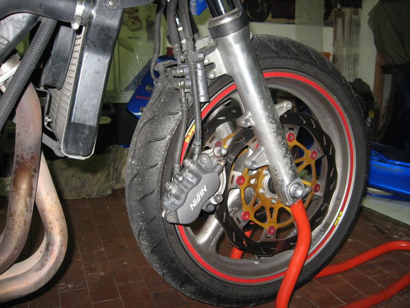 La frenata è il punto debole, non tanto per la potenza (che c'è, pur non eguagliando l'efficacia degli impianti radiali) quanto per un fastidiosissimo chattering che dà davvero tanta noia. Credo che sia dovuto al profilo dei dischi, ma ci sto lavorando sù