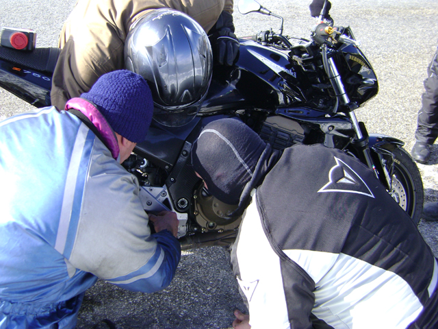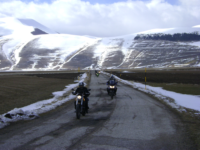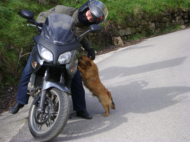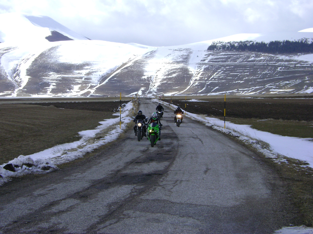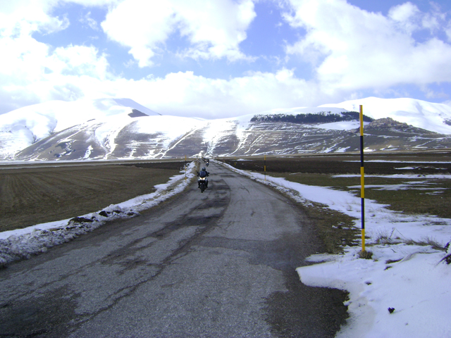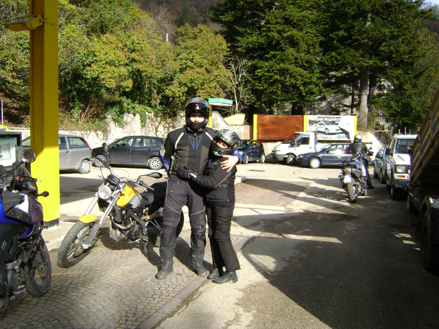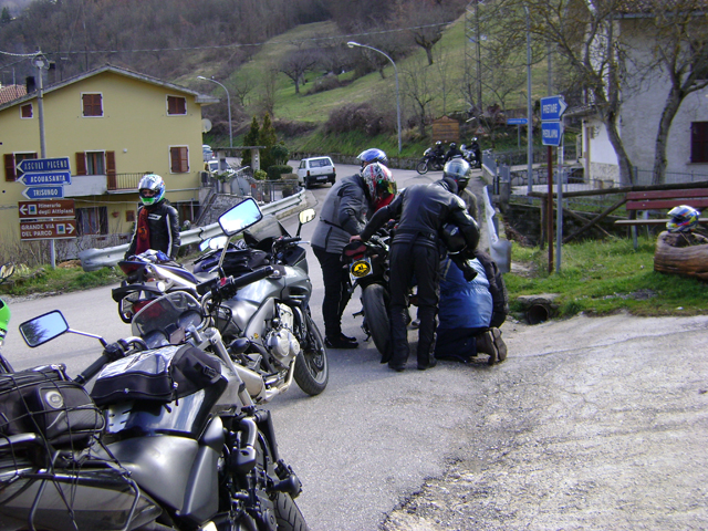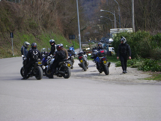 ) per raggiungere gli altri quando, subito prima del bivio per Norcia superiamo alex_ninja_bike che è fermo ad un posto di controllo dei Carabinieri, io e MONK2 siamo un po' indecisi sul da farsi, io mi fermerei ma non so dove e così andiamo piano per un po', dopo pochissimo a Triponzo troviamo una parte del gruppo ferma ad aspettare e ci fermiamo anche noi; non passa molto che lo "sfortunato" ci raggiunge, per fortuna ci tranquillizza: "è tutto a posto era solo un controllo" (meno male, sarà il colore della moto che attira i "moscerini"?...