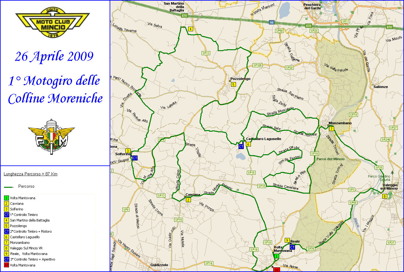 Preciso che il motogiro territoriale non prevede che tutti i partecipanti si muovano in un unico gruppo: ognuno arriva qundo vuole (tra le 8:30 e le 11), si iscrive, ritira il libretto di marcia e la cartina del percorso, fa colazione e poi parte, seguendo le indicazioni (abbiamo predisposto 400 frecce, se calcolate che sono 87 km di giro, credo che sia dura sbagliare!