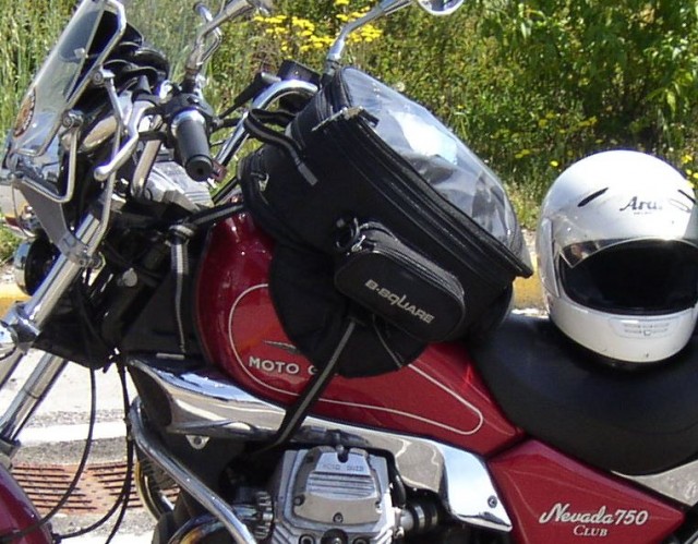 Ha quattro magneti per la tenuta sul serbatoio, una cinghia da passare sotto al serbatoio ed un ulteriore cinghietto per fissarla al cannotto di sterzo