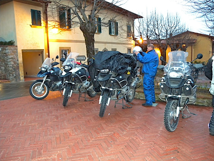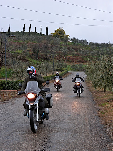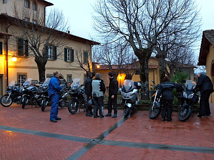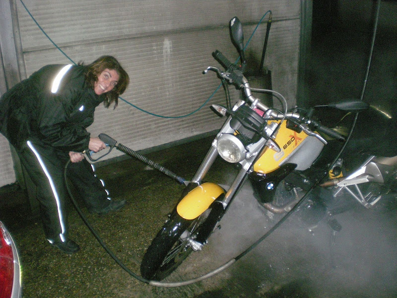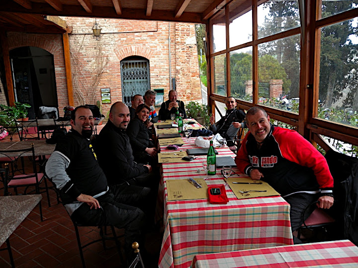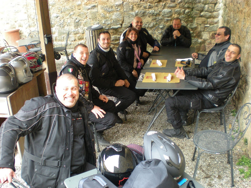 Facciamo una sosta a Bolsena per riunirci e poi riprendiamo per Viterbo dove l'ormai celebre Crazy Horse ci accoglie stanchi e fradici ma soddisfatti! Ennesimo capuccino o caffé e saluti per tutti. Con un supremo sforzo di volontà porto Mukkona al lavaggio e le dò una bella schizzata, poi mi precipito a casa per togliermi i vestiti e farmi una doccia bollente.