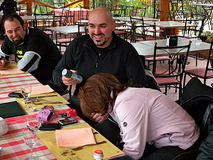 Nel frattempo, il sopraffino odorato di Anthomer percepisce effluvi invitanti. Dato che sono le 12:30 perché non farci preparare un rapido spuntino? Come al solito, nonostante le (flebili) proteste di StefRoma, il "rapido spuntino" degenera in una solenne scorpacciata a base di pappardelle e ravioli (preparati espressi da una delle signore, vedi le foto), pollo arrosto, cinghiale, capriolo, patate arrosto, formaggi e, per finire, frittelline dolci!