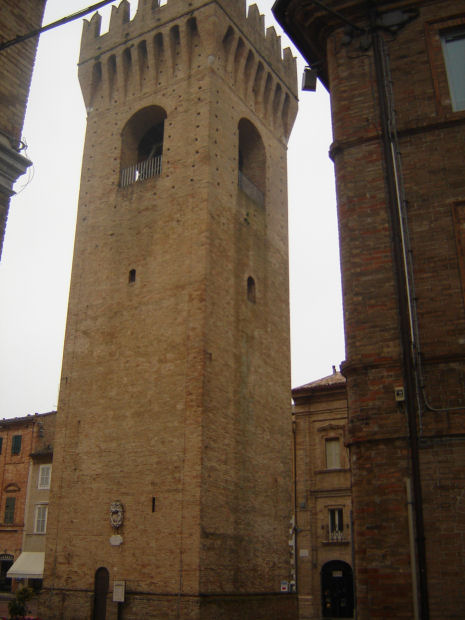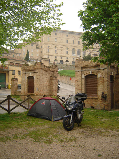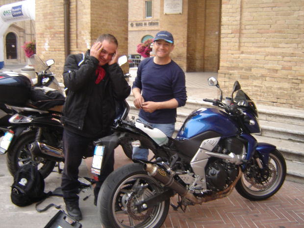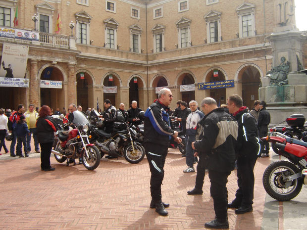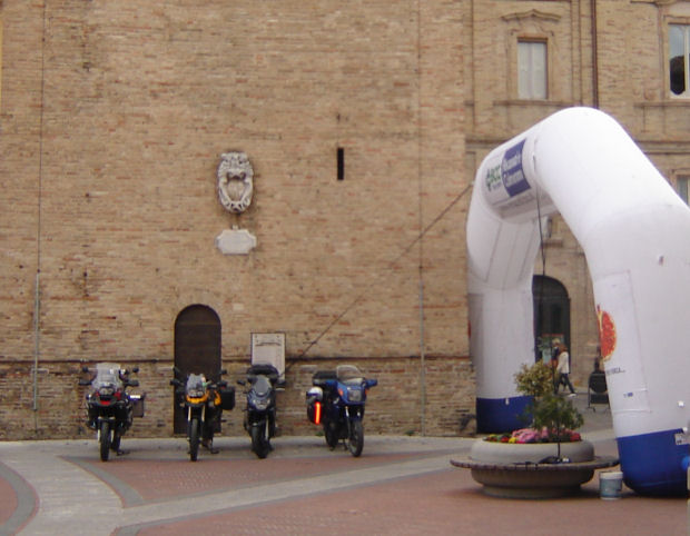 In posa sotto la torre in Piazza Leopardi le moto di Fausto, Fiorenza, Fil e Bentosu...
