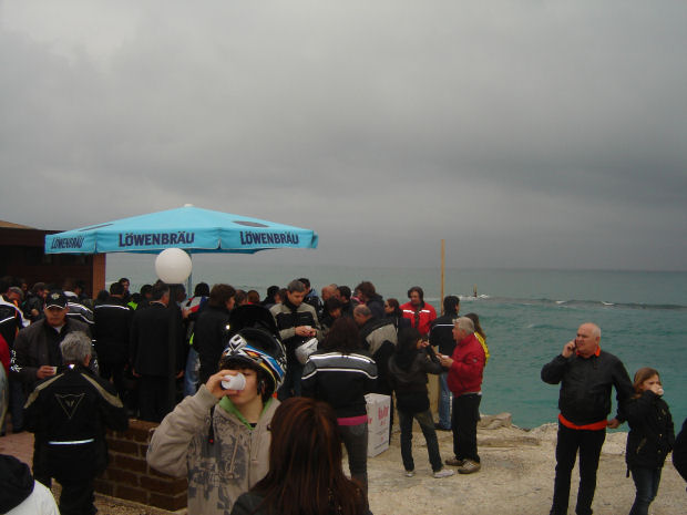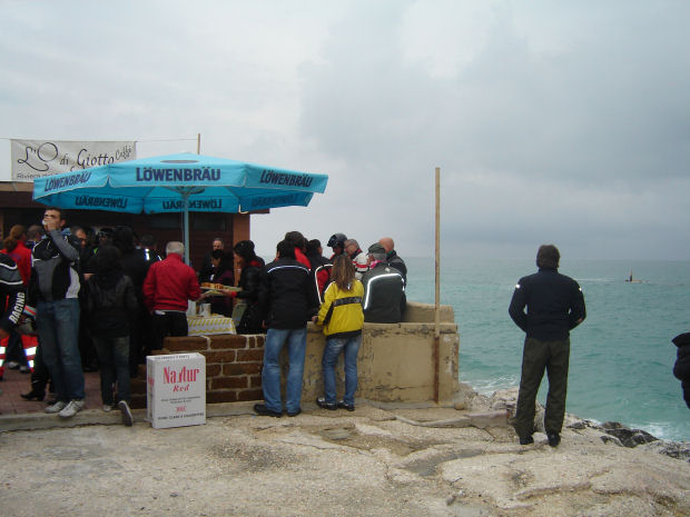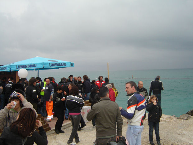 Ci uniamo al motogiro, che ci porta, dopo una sfilata per le vie del centro, a Porto Recanati, dove ci viene offerto un ottimo aperitivo.