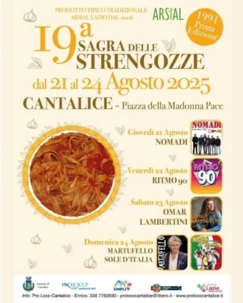 Nel cuore della provincia di Rieti, il pittoresco borgo di Cantalice si prepara ad accogliere la 19a edizione della Sagra delle Strengozze, un evento gastronomico che celebra uno dei piatti pių autentici della tradizione locale...