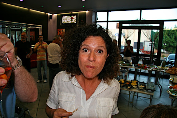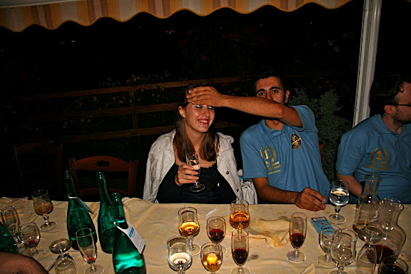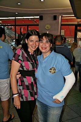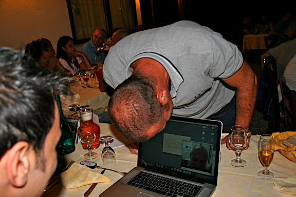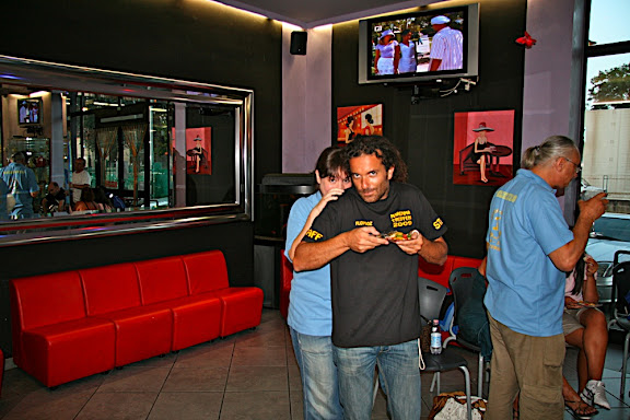 che però mi ha fatto perdere l'aperitivo al bar visto che non mi ha risposto ai cell. (ferma con quel gesto che con il gesso ti viene benissimo eh!). mi ha fatto piacere rivedere anche quello li si si proprio lui quello della valigia piena di penne bic (almeno così ho sentito dire