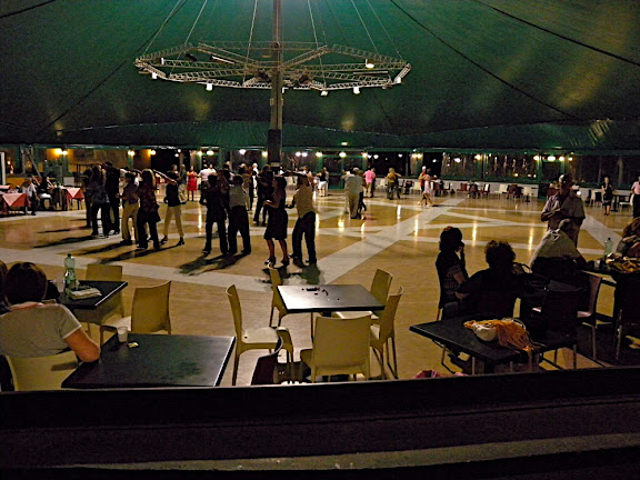 Dopo cena riprendiamo le moto per qualche kilometro fino alla Bella Venere, un complesso ristorante-bar-balera proprio in riva al Lago di Vico. La balera è in piena attività