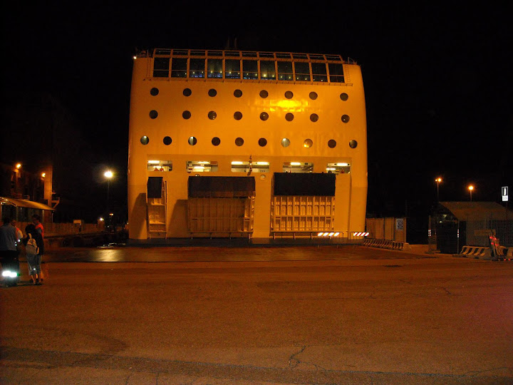 Alle 23.15 arriva la nave, cominciano le operazioni di sbarco e imbarco. Alle 23.40 stiamo gia lasciando il continente alla volta di Olbia....