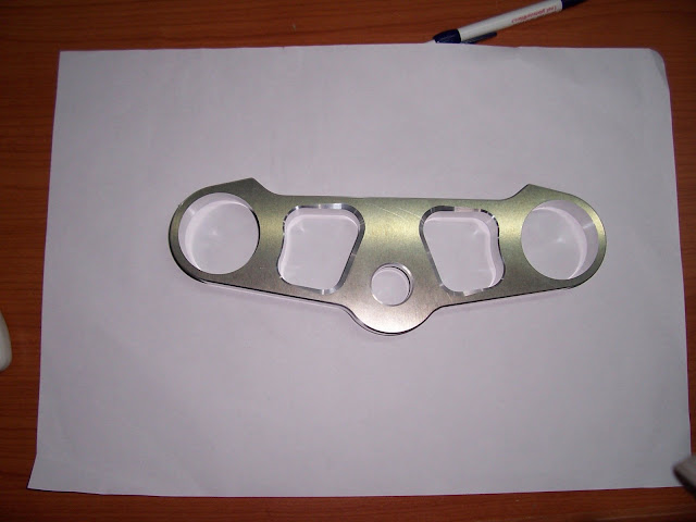 In settimana prosisma dovrei avere finite sia la superiore che l'inferiore, domani lavoro ancora sul telaio, così quando le piastre sono pronte, monto forcella e ruota anteriore, e se anche l'ultimo impianto elettrico non funziona... almeno posso caricare la moto sul carrello e portarla a persone fidate per risolvere la questione elettronica...