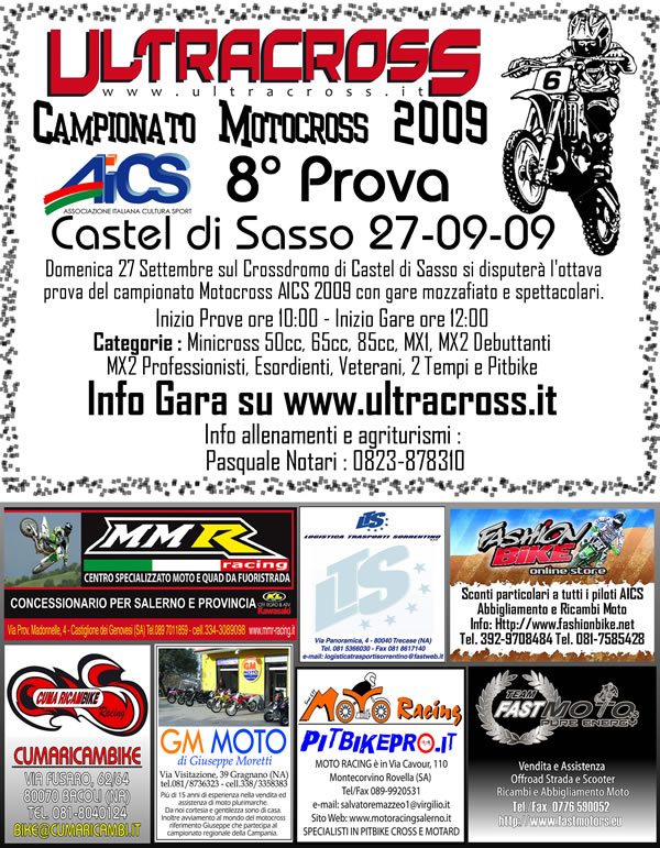 Domenica 27/09/2009 a Castel di Sasso (CE) si terrā l' 8a prova del campionato regionale Aics Pit Bike Cross (anche motocross e minicross)!