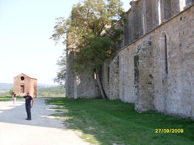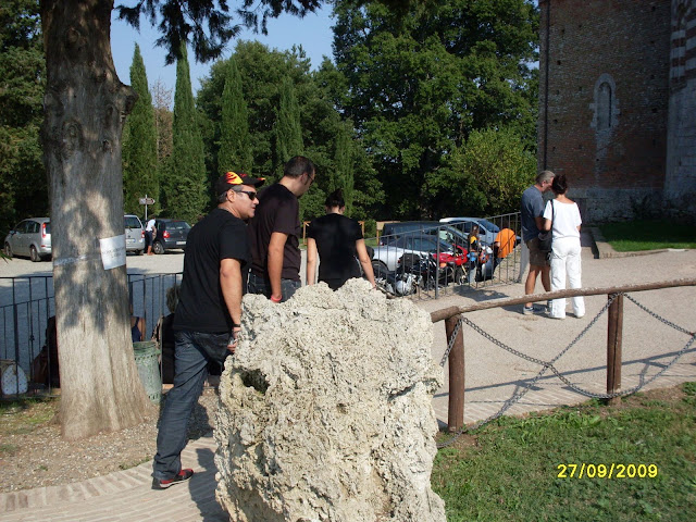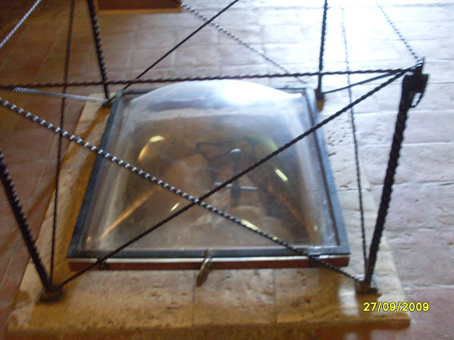 La chiesa a pianta circolare nella quale è custodita la spada nella roccia comprende anche una saletta laterale (pronao) dove sono conservate due braccia (