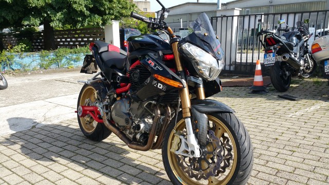 , quindi dopo circa 40 minuti di parte amministrativa, Siamo entrati in possesso della TRK 502 bianca, completa di tris borse Givi. E, per la gioia del concessionario