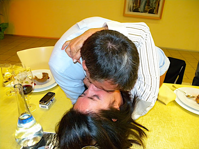 Questa è stata proprio divertente perché, alla mia richiesta, i due piccioncini si sono scambiati uno sguardo d'intesa e poi Gabriele, serissimo, ha cominciato a spostare piatti, posate e bicchieri davanti a lui. All'inizio non capivamo cosa avesse in mente...
