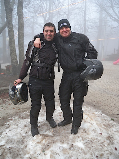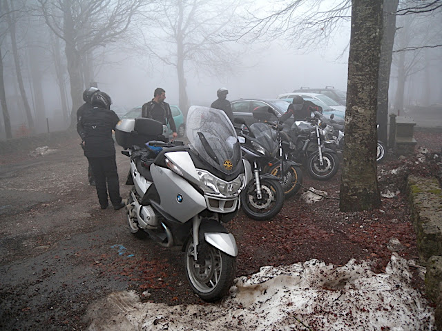 riscaldati e "svuotati", riprendiamo le moto ed iniziamo il ritorno. nebbia ancora più fitta e poco dopo inizia una pioggia a tratti piuttosto intensa che ci accompagna fino a casa (e in questi casi vorrei baciare lo stemmino della dainese per il suo gore-tex spettacolare!!!).