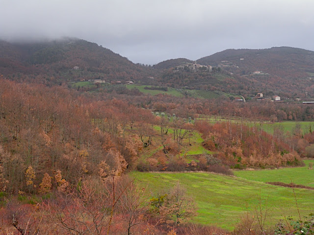 Arrivo a Castelvecchio e giro per Massa Martana immettendomi sulla Via Flaminia, all'altezza di Viepri. Da Massa Martana continuo verso Villa San Faustino e Acqusparta, poi risalgo verso Montecastrilli e Collevalenza. Il tempo è estremamente variabile. Piove, anche fortissimo, poi esce il sole, poi tornano le nuvole, è incredibile la velocità alla quale si spostano nel cielo.