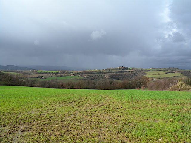 Il tempo è, come previsto, una vera schifezza, ma chissenefrega! Faccio il pieno a Mukkona e mi metto in cammino lungo la Bagnorese. Piove a tratti... Mentre mi avvicino ad Orvieto, noto che c'è un largo squarcio nelle nubi minacciose. C'è anche qualche pezzetto di cielo blu... Ed ecco che mi viene l'idea!