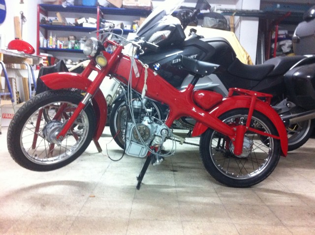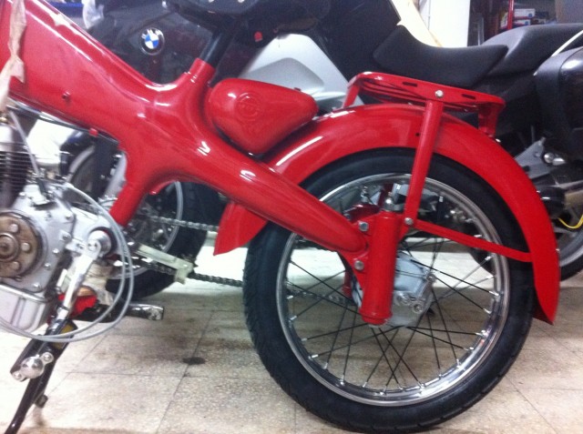 Sicuramente ci sono dei particolari "vedi parafango" che vanno sistemati ma ti posso assicurare che è venuto fuori un bel lavoro e non stiamo parlando di un restauro a fini commerciali ma di un restauro maniacale! Fatto da me, che sicuramente non sono un Guru come voi in fatto di motom ma ti posso assicurare che qualcosa la capisco. Tra le tante tipologie di persone che popolano questo pianeta esiste ancora qualcuno che fa le cose senza scopo di lucro, per puro piacere mi riferisco al signore che come dicevo prima ha restaurato e possiede circa70 motom "anche se qualcuno crede che sia una cavolata". Conobbi questo signore tramite un signore che si occupa di sabbiatura il quale vedendo il mio parafango posteriore molto rovinato ne prese uno da una catasta e mi disse "tu poi puttari" tradotto in italiano te lo puoi prendere, gli chiesi se mi avrebbe aiutato a mettere in fase il motore, e lui mi rispose, quando hai tutto pronto vieni che lo facciamo, oltre a farlo mi ha spiegato i vari modi per fare il lavoro sia con le tacche incise e senza, prese una bobina AT ancora inpacchettata ma antica e mi ha detto ta poi puttari "conoscete giá la traduzione" mi spiegò il principio di funzionamento delle puntine e tante altre cose. Gli telefonai qualche periodo dopo scoraggiatissimo inquanto questo motore non partiva e gli chiesi se me lo poteva sistemare lui, e mi rispose, si io potrei ma il bello di tutto questo e che lo fai tu e che il bello del restauro di una moto sono gli insuccessi in modo da avere molta soddisfazione quando diventano successi (a pensarci non ci sarebbe piacere) mi diete altre dritte per quanto riguarda apertura puntine volano ecc. Alla fine il motore è partito alla grande. Gli telefonai per dargli la notizia e vi posso assicurare che era più felice di me. Grazie ai suoi consigli il motore gira benissimo molto meglio di altre moto d'epoca che possiedo e fatto restaurare spendendo non poco. In queste quattro cose che ho scitto na cosa è sicura c'è chi fa le cose cercando di avere comunque profitto dicendo magari di non avventurarsi in terreni sconosciuti e ci sono poche persone nel mondo che ti spronano aiutandoti ed incoraggiandoti a spingerti oltre per puro piacere senza niente in cambio solo amicizia,