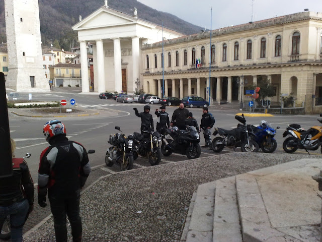 Partiamo e dopo varie tappe ricomponiamo il gruppo prima di arrivare a Valdobbiadene per poi salire verso Folina. Facciamo una serie di tornanti e curvoni con l'asfalto moolto sporco.
