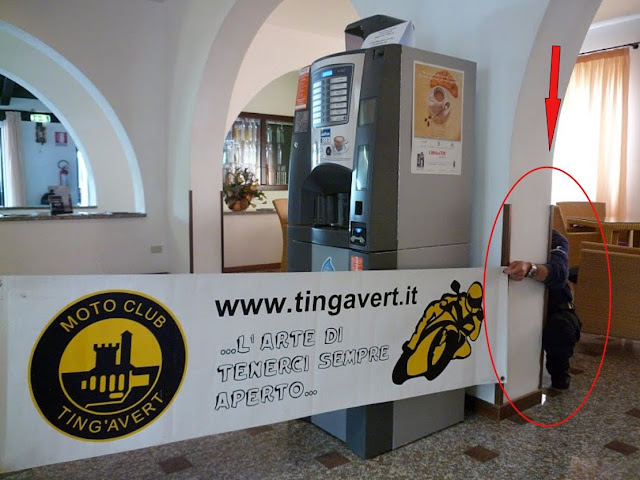 ). Quasi arrivati al ristorante terza noia (Stavolta non mia) il povero Alessio all'ultimo incrocio si gioca un quarto di moto al poker e perde qualche pezzo che devo scansare per non essere coinvolto.
