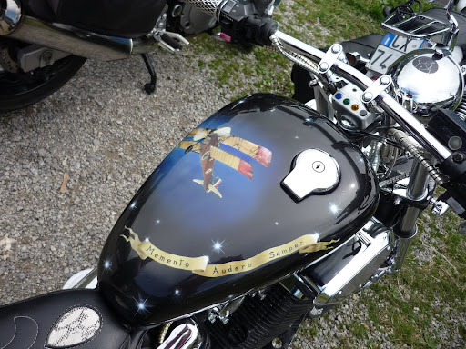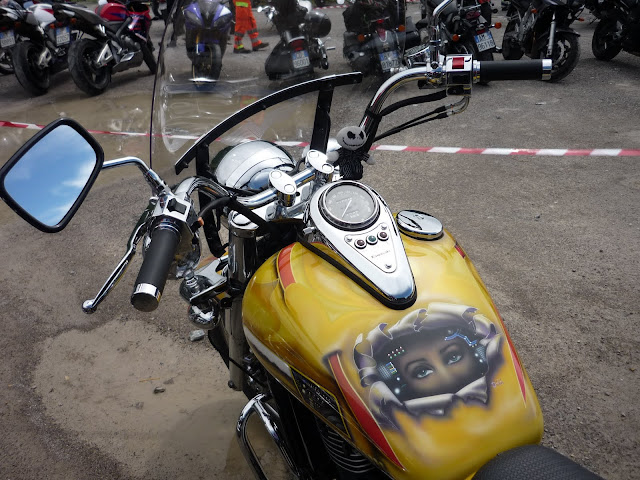 a differenza degli altri anni abbiamo rinunciato a portare la moto nel prato: la Frau K. è una signora aristocratica, e non le va troppo di scorrazzare su e giù assieme alle discole giovincelle.