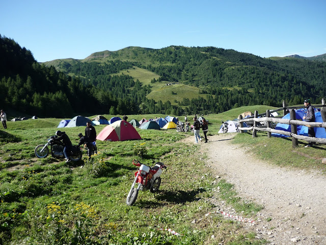 l'anno scorso il raduno del Crocedomini fu il più divertente dell'intera stagione motociclistica.... per cui quest'anno lo attendevo con molta trepidazione. la location è la medesima, la più bella che abbia mai visto, proprio sul passo omonimo, in mezzo al verde dei prati di montagna.