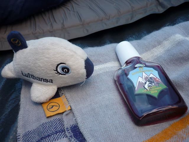al nostro arrivo ci viene data la medaglietta ricordo, e la tradizionale fiaschetta di grappa ai mirtilli rossi.
