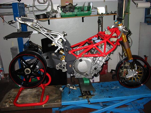 Essendo amanti in particolare delle moto italiane, seppur nel mio cuore batte un piccolo desmo, come non rimanere affascinati da questa splendida moto? Il solo problema e' che a noi piace andare in pista, e non siamo proprio capaci di entrare con una moto di serie. Quindi inizialmente partendo dalla base di una 750 abbiamo pensato di prepararla, partendo sempre da un ottima ciclistica, che fa sempre la differenza per poi pero' scontrarci con una bruttissima realta': il 750 preparato troppo si spacca e prende fuoco