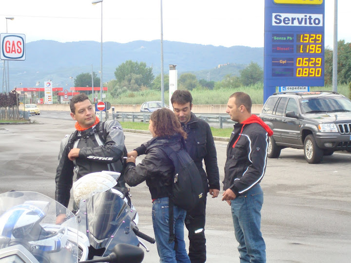 Un ultimo saluto, siamo una decina, le auto di Hellome e Tribalina sfilano salutando lungo la bretella di Pistoia, adesso siamo in pochi ma oggi eravamo un bel gruppo, fuori dal ristorante ho contato una ventina di moto,più altri in 4 auto.