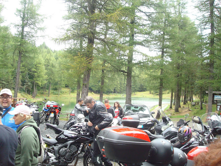 , pensando di essere in un ritardo mostruoso corro il più possibile, ma al Lago troviamo "solo" un gruppetto di sparuti, quanto infreddoliti emiliani: Steffo, Gabro, Frankolo, i saluti di rito, due foto al lago, una telefonata per sapere dove erano finiti gli altri ed ecco che sbucano i coniugi Scargalesen da Monghidoro con amore, si fanno presto le 13. La fame aumenta, il freddo e l'umidità pure.