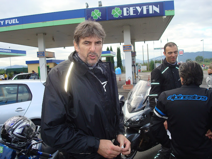 Le nuvole sono arancioni , riparto insieme agli ultimi compagni di strada ed eccola la meravigliosa sensazione di appagamento, la moto non ha peso anche se la guido da più di 200 km, anche un tratto di autostrada mi sembra meraviglioso, è lo stao di grazia che mi pervade..........oggi o guidato sull bagnato e sull'asciutoo, sono andato forte e ho passeggiato , ho brindato e riso in compagnia di Motociclisti come me ....