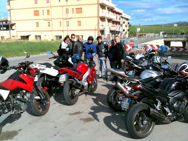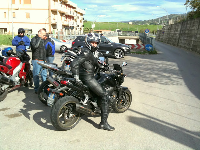 Stamane arrivo da ultimo all'appuntamento, devo anche fare benzina, perciò in tutta fretta mi metto in marcia per far benzina all'Agip poco dopo la concessionaria H-D. Faccio benza ma non trovo nessuno ad aspettarmi perciò, visto che prima li avevo negli specchietti, penso che siano andati avanti e comincio ad inseguirli, con la speranza che un po' di traffico mi permetta di riprenderli presto... peccato che non riesco a scorgerli neanche oltre Giacalone allorchè chiedo a dei ciclisti se avevano visto passare dei motociclisti: Ricevo risposta negativa e mi viene il dubbio che gli altri, anzichè essere avanti, siano indietro!