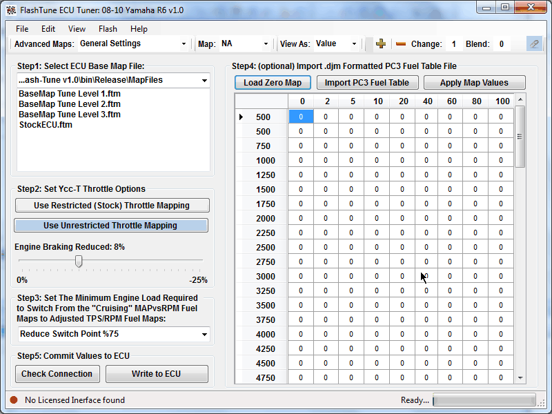 Puoi regolare i parametri della YEC: tempi di cambiata nelle singole marce (se hai il cambio elettronico), iniezione su due mappe, anticipo, apertura dell'acceleratore, freno motore, correzione con l'air box in pressione, regime di intervento del limitatore, regime di apertura dei cornetti di aspirazione, minimo.