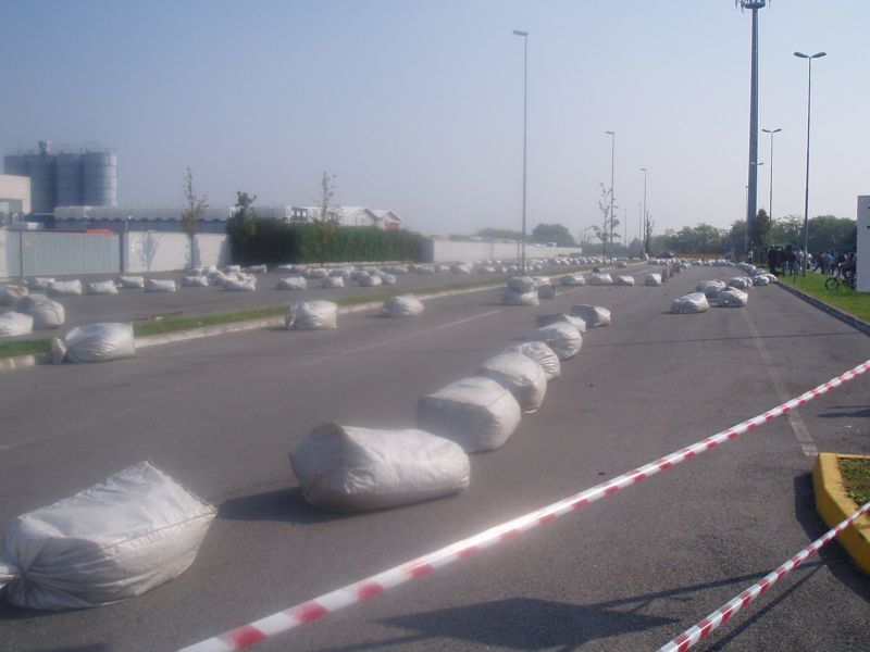 | Note: Ciao a tutti !!! Si offrono protezioni bordo pista costituite da sacchi in juta riempiti con truciolo di gomma-spugna. Sono leggeri da trasportare e movimentare ed allo stesso tempo molto efficaci nell'attenuazione dei colpi e nel rallentamento del mezzo in fase di impatto. Già stati omologati per gare amatoriali. La quantità disponibile è sufficiente per delimitare un intero circuito cittadino. Se interessati contattare il sig. Maurizio al cell. 334.2407292 in ore pasti. Il materiale è in deposito in provincia sud di Bergamo. Di seguito un paio di immagini delle protezioni utilizzate nelle gare. Grazie, saluti | |