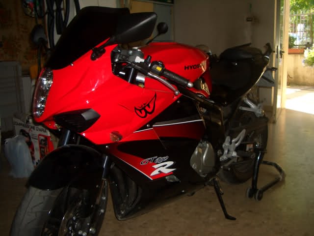 Tra poco ne posterò una recente, dove potrete ammirare le modifiche estetiche apportate (wheel stripes dorate ai cerchioni, stabilizzatori manubrio dorati, cupolino Biondi Dark e specchietti after market!)