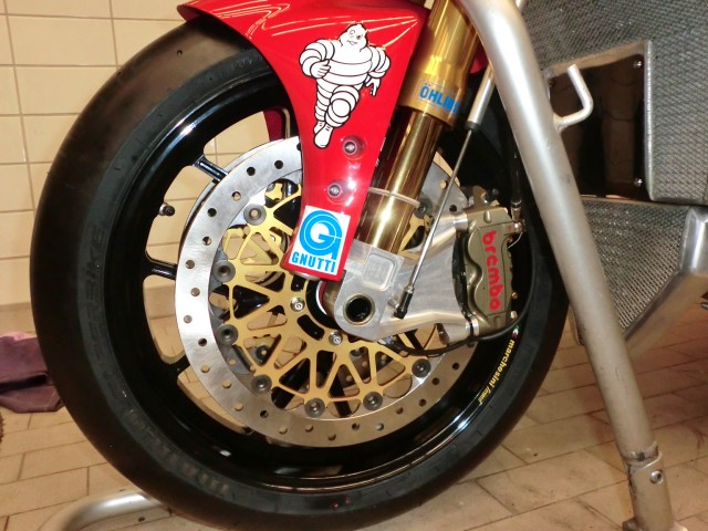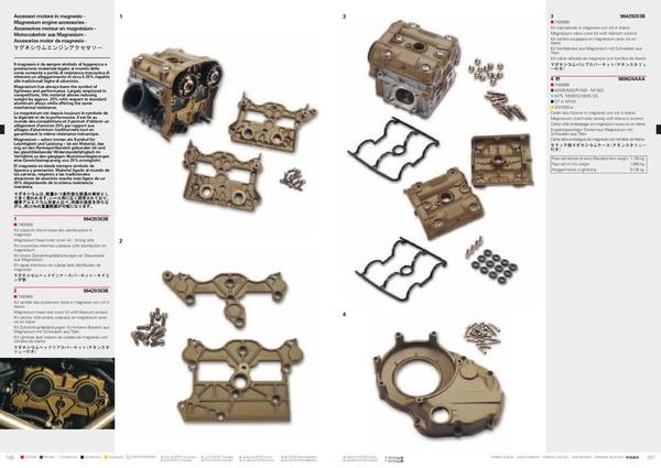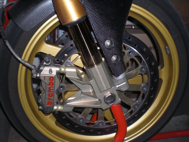 Monobraccio in magnesio: quelli factory o RS sono pressoché introvabili, ne avevo visti un paio ma messi parecchio male. Ci sono i RAM (ditta monegasca che importa inoltre i cerchi in carbonio BST) o i Febur, ma sono repliche. Un collezionista inglese di Ducati che ha recentemente visto il mio forcellone in magnesio (un factory 2000 o 2001) mi ha detto che vale circa 4.000 £ (sterline). Penso che il prezzo sia lievitato negli ultimi anni a causa della difficilissima reperibilità di questi pezzi.