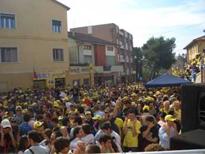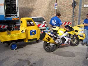 Con la birra che scorre a fiumi e le bandiere gialle che sventolano. Muoversi è sempre più difficile e chi può conquista una posizione da cui vedere un pezzetto di maxi schermo. Ci sono persone che continuano ad arrivare trafelate dalla Toscana, da Roma e da Bologna, provano a comperare qualcosa da mangiare, ma il gran premio sta per partire e le botteghe tirano giù la saracinesca. C'è Valentino a Valencia.