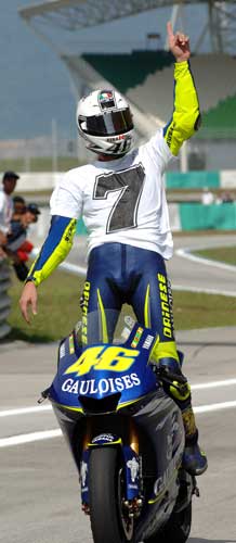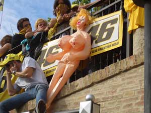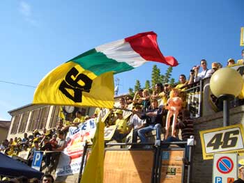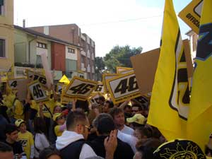 Da Firenze, Pisa, Pistoia, Milano, Roma., Siena, Napoli e Pesaro naturalmente. Un popolo di fans firmato 46 proveniente da tutta Italia e non solo per festeggiare assieme ai concittadini di Vale il titolo mondiale. Il sesto consecutivo se solo non ci fosse stata quella maledetta caduta che nessuno si aspettava. L'incredibile è successo. Durante il quinto giro il campione pesarese ha perso il controllo dell'anteriore ed è scivolato su ghiaia. A nulla è servito girare a mille a testa bassa, senza mai mollare fino al traguardo dove è arrivato 13° a meno cinque dall'americano Nicky Hayden. Dopo cinque anni il Dottore viene scalzato dal trono della MotoGp.