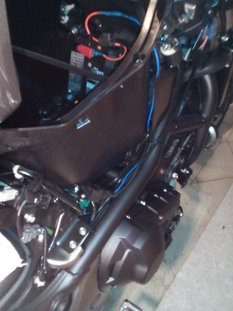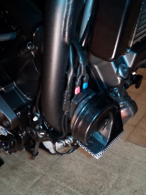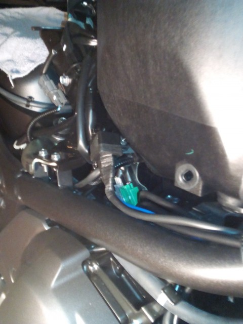 Il relè l'ho posizionato con una staffetta ad hoc sotto il finto serbatoio. Non avendo i faston a tenuta stagna ho fasciato tutto con nastro vulcanizzante: