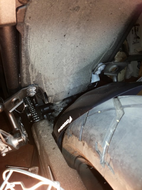 Ho dovuto fare un sacco di modifiche per poterlo installare lontano dalla ruota. (vedi mio post precedente con foto).