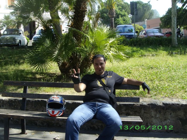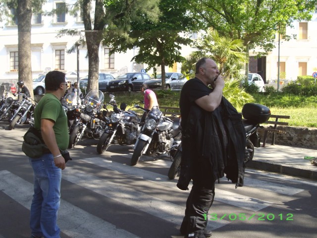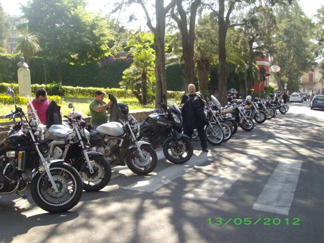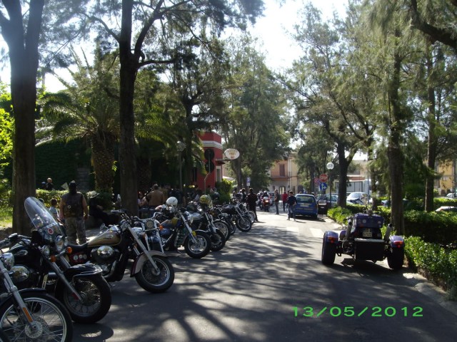 alla villa comunale nell'ombra degli alberi il viale piano piano si popola della gente(per lo piu' customisti)che ci riempie il cuore e le orecchie.